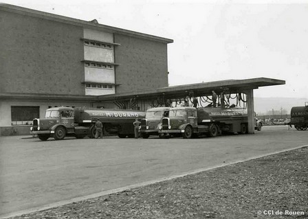 Construit en 1950 par l’architecte rouennais Pierre Maurice Lefebvre, ce bâtiment hors norme était alors considéré comme le plus grand chai à vin d’Europe. À cette époque, l’Algérie exportait massivement sa production viticole. Les cargos appelés pinardiers accostaient au port de Rouen chargés de vin. Celui-ci était ensuite stocké dans cet immense entrepôt avant de repartir vers Paris et les grandes villes du nord.